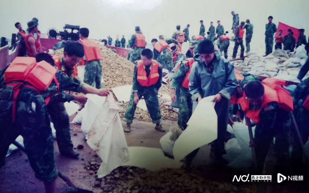 李明超参与抗洪抢险时的照片。受访者供图